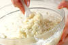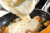 <豆乳ソース>を作る。1 鍋にバターを弱火で溶かして小麦粉を加え、焦がさない様に木ベラで混ぜながら炒める。2 泡が細かくなったら冷たい豆乳を一気に加え、強火にしてダマにならない様に泡立て器でよく混ぜ合わせる。3 白みそ、昆布茶を加え、塩コショウして少し火を弱め、トロリとするまで時々混ぜながら煮詰める。