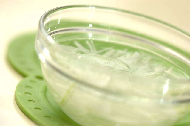 グリーンアスパラは根元のかたい部分とハカマを取り、太い部分の皮をむいて3等分に切る。玉ネギは薄切りにして水にさらし水気をきる。