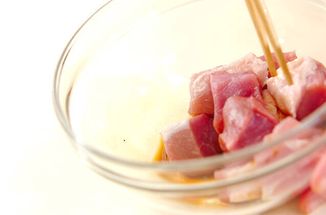 豚もも肉は2cm角に切り、<下味>の材料をからめる。
