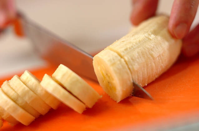ピーナッツバターは室温で柔らかくしておく。バナナは5mmぐらいの厚さに輪切りする