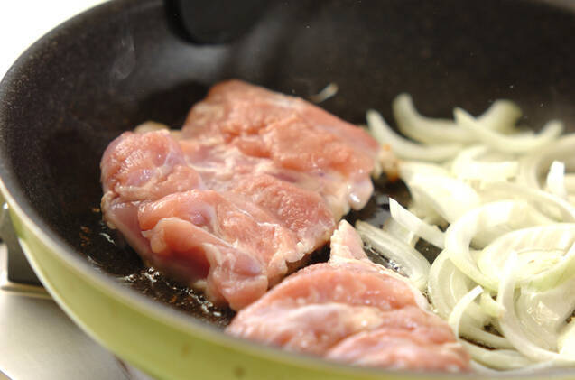 大きなフライパンにサラダ油を中火で熱し、半面に鶏もも肉を皮側を下にして並べ入れ、途中で返しながら火を通す。器に盛り、粗びき黒コショウを振ってレモンを添える。