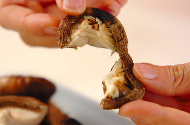 シイタケは軸を切り落とし、汚れを拭き取る。しっかり焼いた網に、内側を下にして並べる。少ししんなりしたらひっくり返す。全体に火が通ったら火からおろし、食べやすい大きさに裂き、器に盛ってスダチをかける。