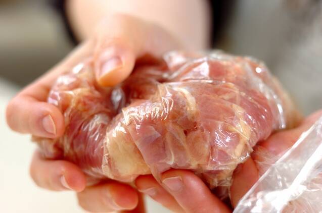 鶏もも肉と<下味>の材料をビニール袋に入れ、水気がなくなるまでよくもみ込み、1時間以上置く。