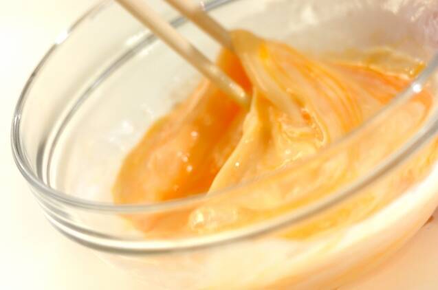ボウルで<卵液>の材料を混ぜ合わせる。