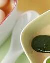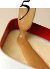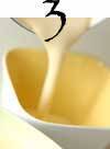 粉ゼラチンは水に振り入れふやかしておく。卵黄に砂糖を加え、泡立て器で白っぽくなるまですり混ぜる。沸騰寸前まで温めた豆乳を加え、なめらかになるまで混ぜたら鍋に戻し中火にかける。