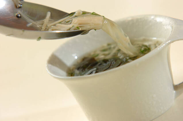 モロヘイヤと鶏ささ身のゴマ和え ワカメスープ