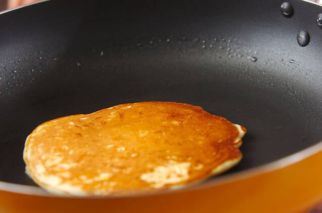 フライパンにサラダ油を薄く敷いて、合わせた<生地>を適量流し込む。弱火にしてプツプツ泡が出てきたら、ひっくり返して焼き色がつくまで焼き、食べやすい大きさに切って器にのせる。