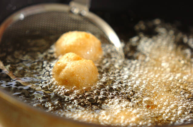 揚げ油を170℃に熱し、(1)を5~6分ゆっくり揚げる。