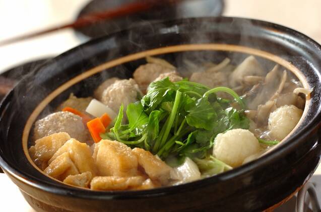 ご飯をつぶして丸めた「だまこ」はきりたんぽのルーツとも。鶏肉から出ただしで、野菜とだまこを煮た秋田の郷土料理。今回はだまこの形に合わせ鶏団子にアレンジ。