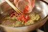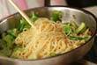 ゆで上がったパスタと野菜をザルに上げ、4 のフライパンに加え、オリーブ油が全体にからまる様に手早く炒めあわせ、黒コショウで味を整え、器に盛る。