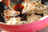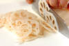 レンコンは皮をむき、薄い半月切りにして水に放ち、水気をきる。