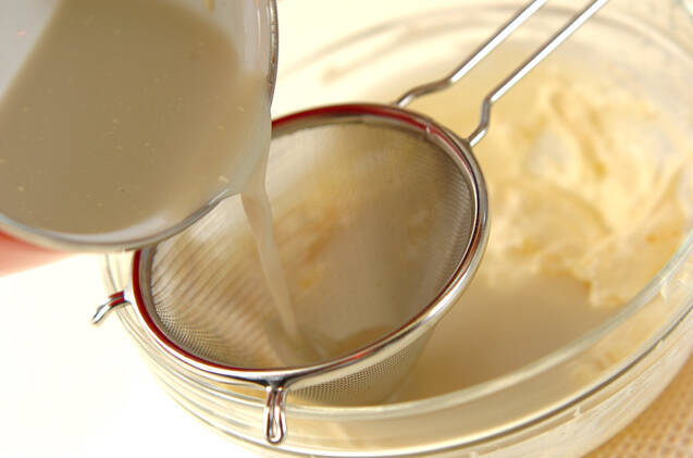 4をこしながら2に加え、泡立て器でよく混ぜ合わせる。
