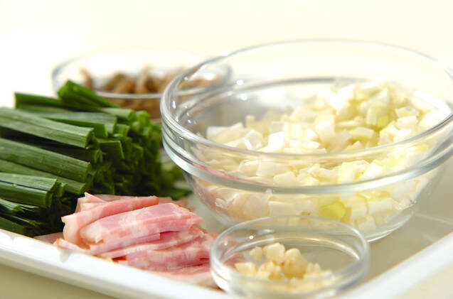 ニラは長さ3~4cmに切る。