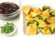 カボチャは種とワタを取り、所々皮をむき、一口大に切る。