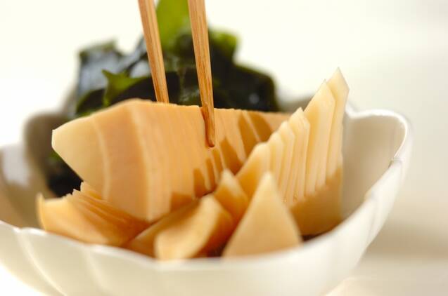 ワカメを加えてサッと火を通し、器に盛る。あれば木の芽を飾る。