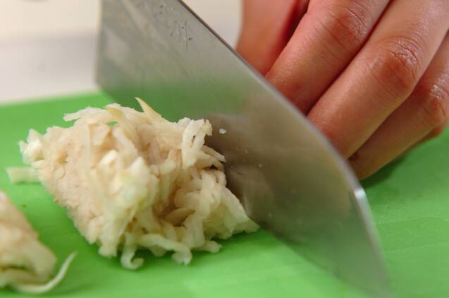 切干し大根は水で柔らかくもどし、水気を絞ってザク切りにする。