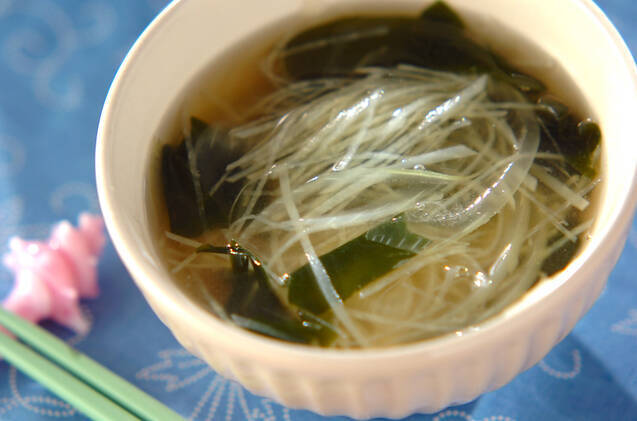 せん切りにしたジャガイモがたっぷり入った、中華風スープ。見た目より食べごたえがあります。