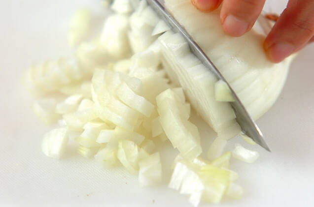 玉ネギは粗みじん切りにする。