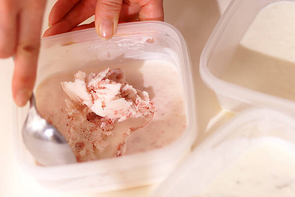 2をバットなどに入れ、4~5時間冷凍庫で冷やし固める。固まればフォーク等でかき混ぜ、ふんわりとさせる。