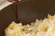 しょうゆを鍋肌から加え、香りよく全体に混ぜ、器に盛り付ける。