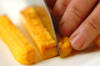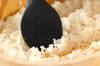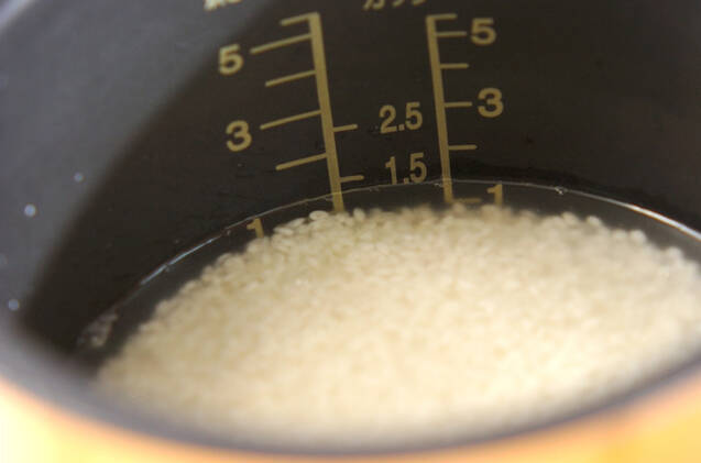 炊飯器に洗い米、通常の水加減より少し少なめの水を入れ、かたく絞ったぬれ布巾で汚れを拭き取った昆布を入れてスイッチを入れる。