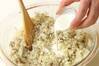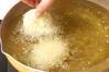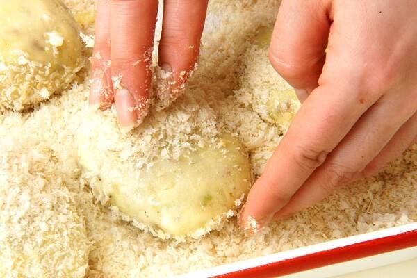 8等分の小判型にまとめ、小麦粉、溶き卵、パン粉と衣をつける。