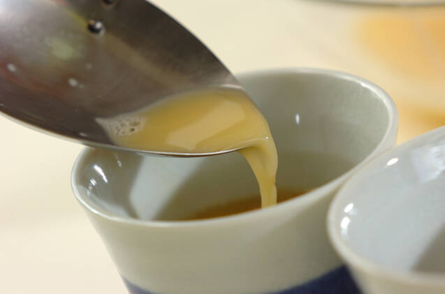 器に絹ごし豆腐、カマボコを入れ、<卵液>を注ぐ。湯気の上がった蒸し器に入れ、蓋をして強火で1分、弱火で12~15分蒸す。竹串を刺して透明な汁が出たらOK。濁った汁が出てきたら、さらに2~3分蒸して下さい。