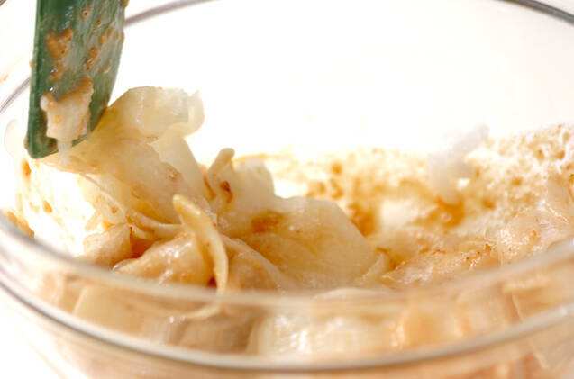 ボウルに<合わせゴマ酢>を混ぜ合わせ、冬瓜の水気を絞って加え、全体に和えて器に盛り分ける。