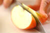 耐熱容器にリンゴを並べ、グラニュー糖、シナモンパウダーを振りかけ、スライスチーズをのせる。