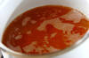 <つけだし>の材料を混ぜ合わせる。(ヒント)アルコールが苦手な方は、ひと煮たちさせてアルコール分を飛ばして冷ましておく。お酒のアルコール分に火がつくことがあるので、火傷をしない様に注意して下さい。