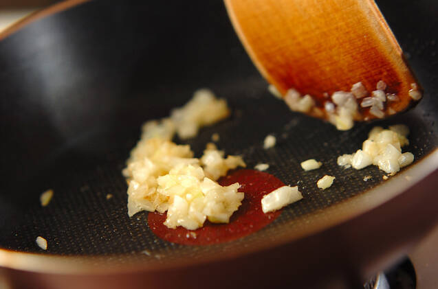 玉ネギを細かいみじん切りにし、バターを熱したフライパンで炒める。