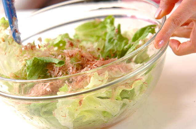 かつお節を加えてからめ、器に盛り分ける。