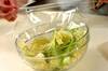 春キャベツを耐熱ボウルに入れ、ラップをかけ、電子レンジで約1~2分キャベツがしんなりするまで加熱する。