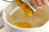 エノキがしんなりしたら牛乳、顆粒スープの素を入れ、顆粒スープの素が煮溶けたら、クリームコーンを加える。