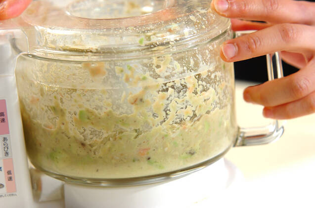 アボカドは皮と種を取り除き、フードプロセッサーに鮭と一緒に入れてなめらかになるまでかくはんする。