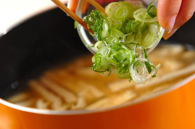 鍋にだし汁を入れて強火にかける。煮たったら絹ごし豆腐と油揚げを加え、みそを溶き入れる。煮たつ直前に刻みネギを加えてひと混ぜし、器に注ぎ入れる。