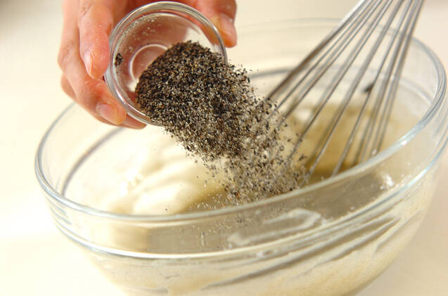 粉類とすり黒ゴマを加え、さらに混ぜる。