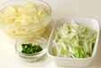 ジャガイモは皮をむき、薄切りにして水に放つ。