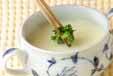 器に注ぎ、菜の花を浮かせ、コショウを振り掛ける。