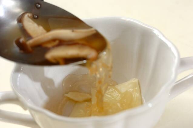 器に1/4にちぎったスライスチーズを入れ、アツアツのスープを注ぐ。パセリを飾る。