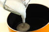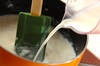 (1)を混ぜながら弱火にかけ、トロミがついてきたら牛乳を加える。ゴムベラで混ぜながら3分煮、塩を加えて味を調える。