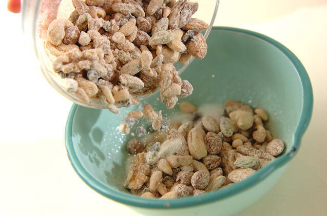2に1のナッツ類を加え、ゴムベラでよく混ぜ合わせる。