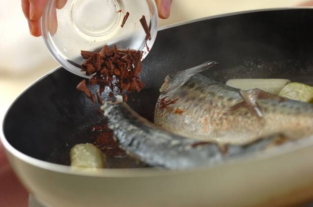 全体に火が通ったらみそと刻んだ板チョコレートを加え、さらに4~5分煮る。