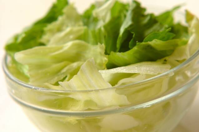 レタスは水洗いして水気をきり、食べやすい大きさにちぎる。揚げ油を170℃に予熱し始める。