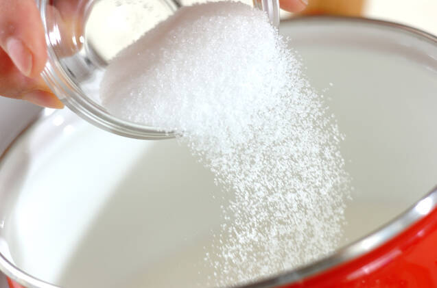 粉ゼラチンは水に振り入れてふやかしておく。桜の花はサッと水洗いし、水気を拭き取ってみじん切りにする。鍋に牛乳、グラニュー糖を入れて火にかける。沸騰させないように注意しながらグラニュー糖を煮溶かして火を止める。