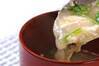 煮立つ直前に、ほうれん草を加えて火を止め、器によそい、削ぎユズ皮を加える。