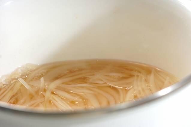 鍋に玉ネギと<合わせだし>の材料を入れて中火にかけ、煮たったら弱火にして鍋に蓋をしてしんなりするまで蒸し煮にする。