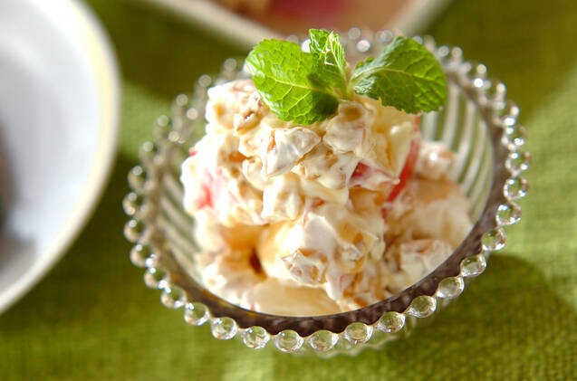 リンゴとクルミをマスカルポーネチーズで和えた、とっても簡単なデザート。