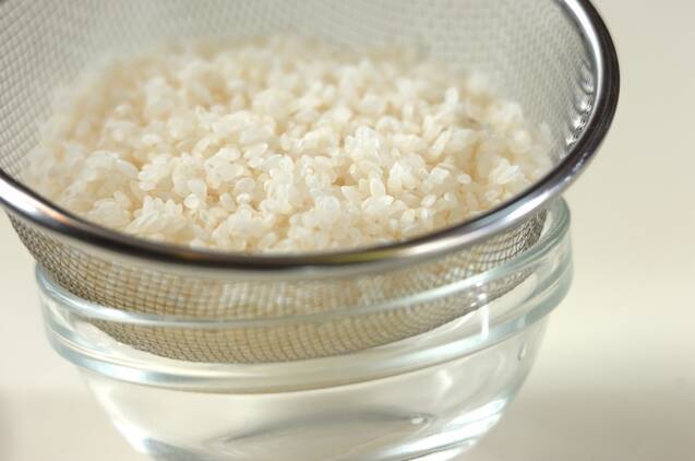 お米は炊く30分以上前に水洗いし、ザルに上げておく。