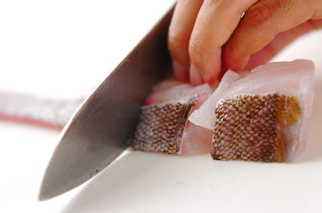 生タラは、サッと水洗いして4つに切る。